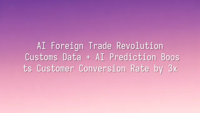 AI Foreign Trade Revolution: Customs Data + AI Prediction Boosts Customer Conversion Rate by 3x