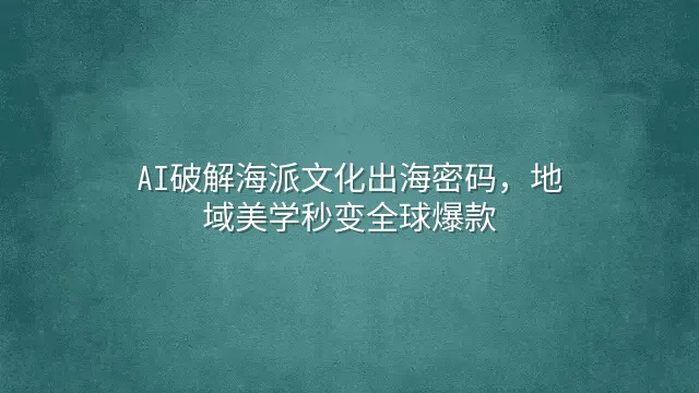 AI破解海派文化出海密码,地域美学秒变全球爆款