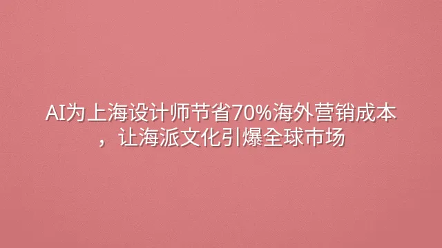 AI为上海设计师节省70%海外营销成本,让海派文化引爆全球市场